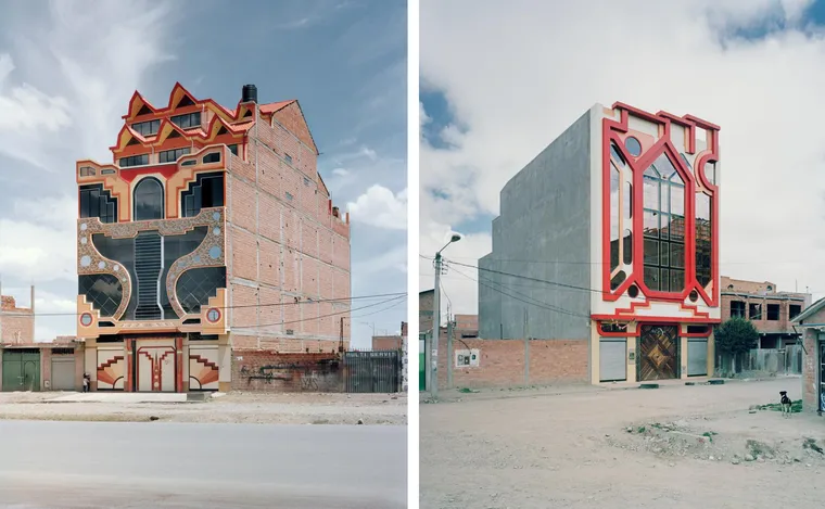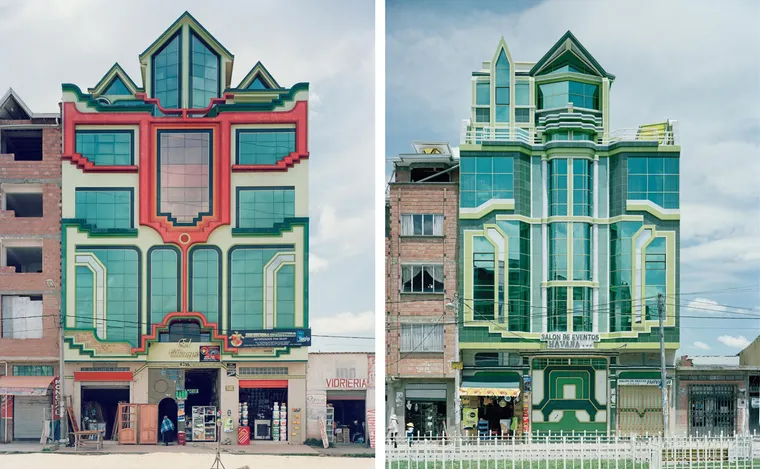 Essas construções destacam-se por suas fachadas psicodélicas, que incorporam elementos da arte têxtil aimará, como os aguayos, tecidos tradicionais com padrões geométricos e cores vibrantes. Tanto as cores das fachadas quanto dos interiores são inspiradas nos tecidos criados e usados por mulheres da cultura aimará, à qual 75% da população de El Alto se identifica.